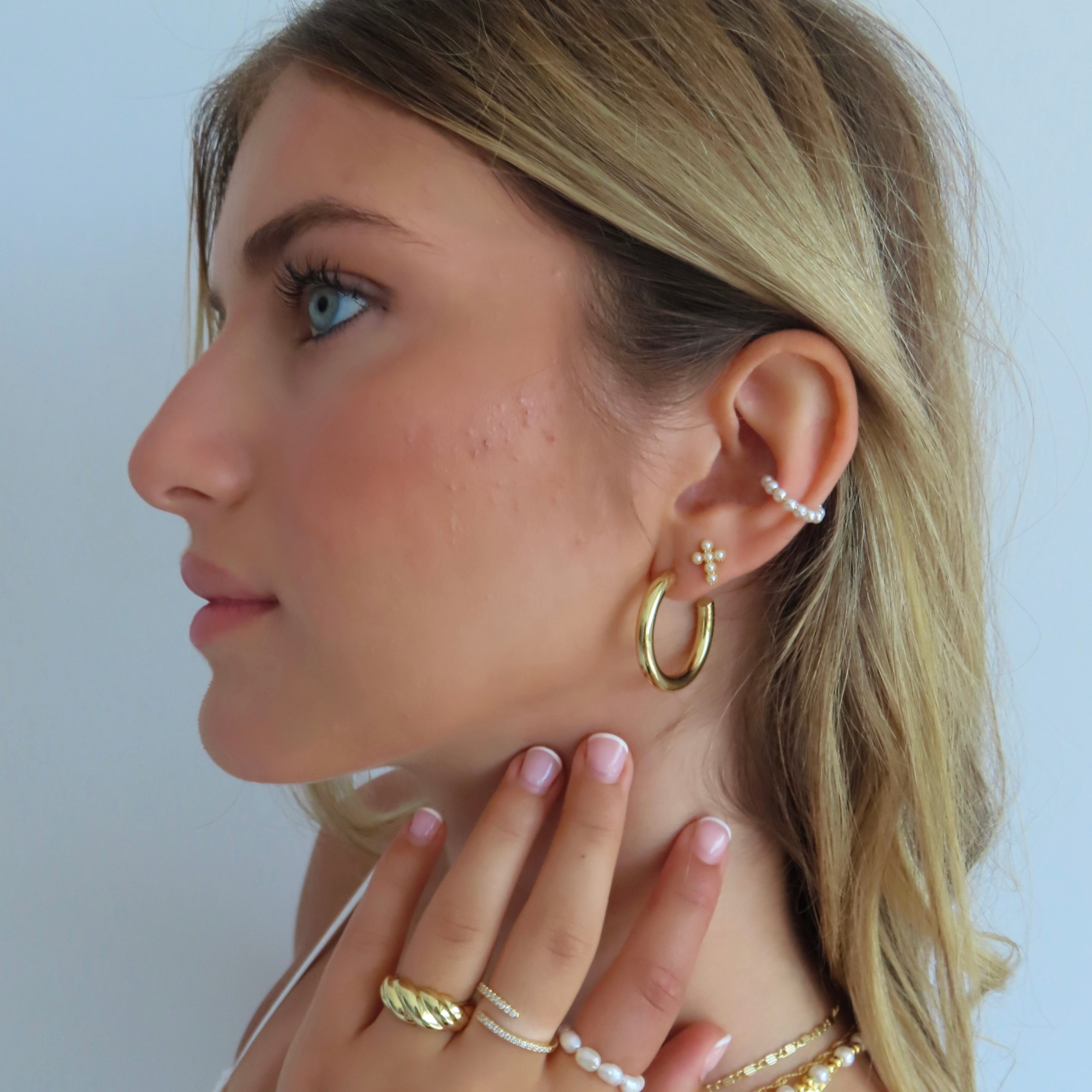 Can you Keep up with the Calabasas hoops? Add these iconic gold hoops to your jewelry collection for a classic earring moment. Let them shine alone or pair them with our for a combo worthy of its own reality TV show.